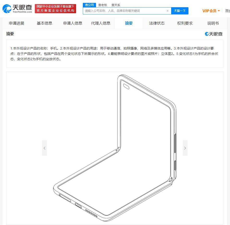 摘要显示,该外观设计产品用于移动通信、拍照摄像、网络及多媒体应用等,其设计要点为产品在两个变化状态下所展示的形状等。